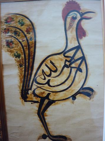 תמונה 2. מוחמד עלי אל-בהא היה הביוגראף של בהא-אול'ה. אותו מוחמד נולד בבגדד ונפטר בחיפה בשנת 1937. מופיע כאן כתב ערבי מסולסל נדיר ביופיו על גופה של תרנגולת.