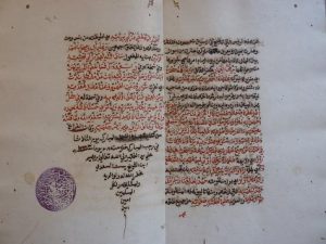 תמונה 3. כתב ידו של אחמד אל-ג'זאר פחה משנת 1233 להיג'רה (1879). דף זה נמצא בספרייה האחמדית. סגנון זה של כתב נקרא בערבית טוֹלוּת.