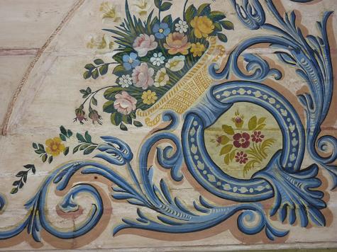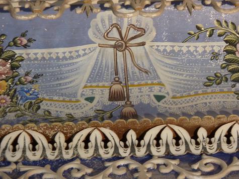 תמונה 4. תקרה משוחה בפרסקו בביתו של תאופיק אל עבדאללה ראש עירית עכו בשנים 1934-1929. בשנת 1951 הגיעו לעכו העתיקה כ- 30 משפחות של יהודים מעירק. משפחת שבת התגוררה בקומת הקרקע של בית זה במשך ארבע שנים.