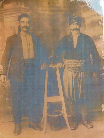 תמונה 6. המתאבקים המפורסמים מתחילת שנות ה- 30 של המאה ה- 20 בעכו: מימין עלי זֵיינָה מן העיר צידון ומשמאל אל חאג' תופיק אל גָ'מאל מעכו.