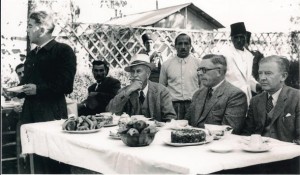 בתמונה: בתחילת שנות ה-30 של המאה הקודמת הגיע אורח חשוב מאנגליה חמוש במשקפיים. משה פפר (חוואג'ה מוסא) עומד בצד שמאל.