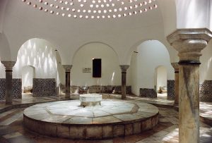 אגב, הכניסה לבית המרחץ היתה מן הפתח המצוי עד היום בקיר המערבי של החמאם. מן הכניסה הוביל מסדרון קצר מפותל. למה מפותל? כדי למנוע בריחת החום החוצה וכניסת הקור פנימה, וגם על מנת להסתיר את המתרחצים, העירומים-למחצה, מעין האנשים שמחוץ למבנה.