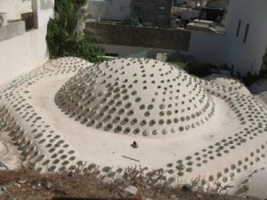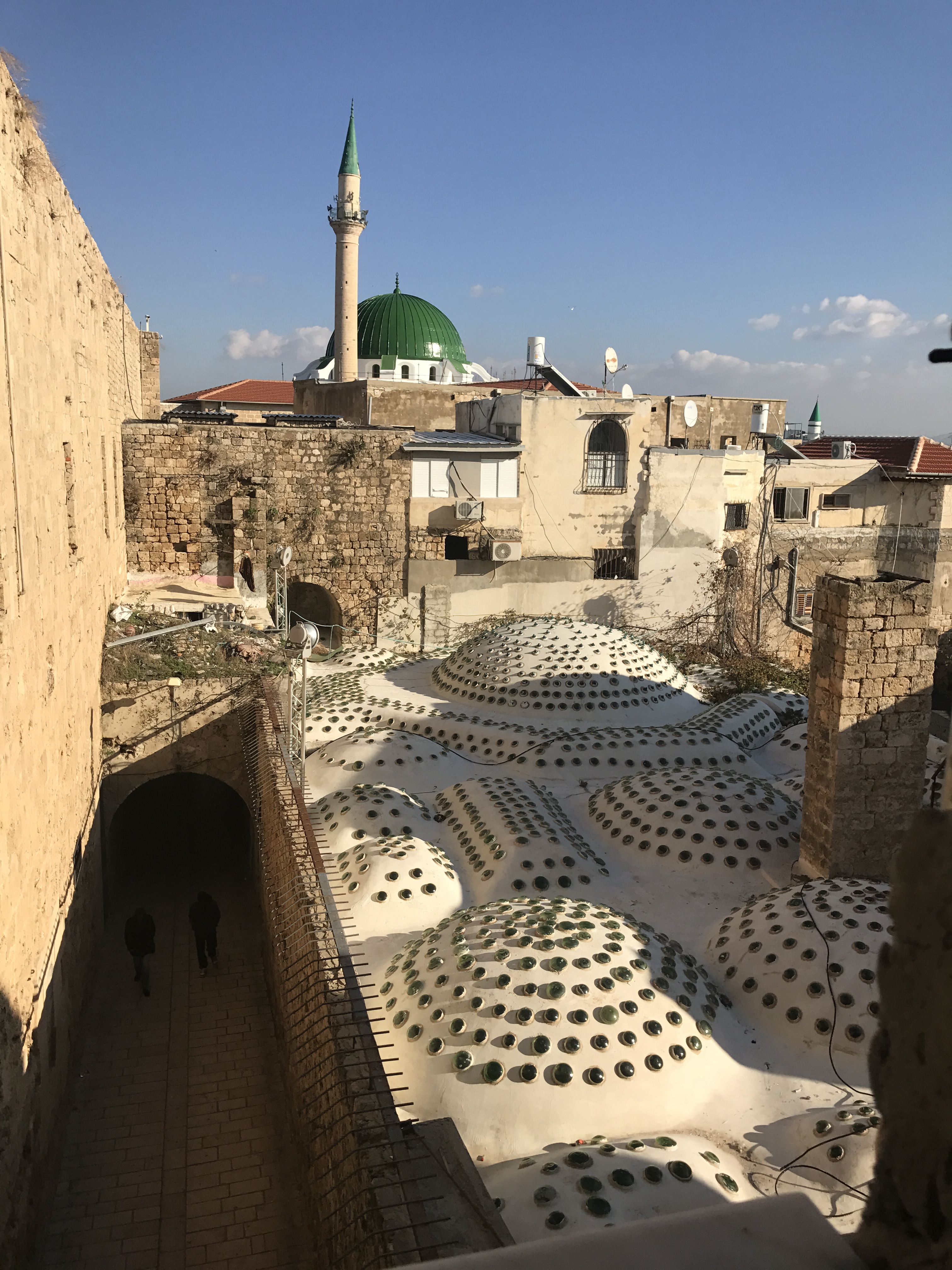 נקודת מבט מעניינת על גג החמאם וגביעי הזכוכית המשוקעים בו ניתן לראות מתא השירותים של זווית שאזלייה.