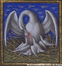 מעל חזית חדר הקבורה אשר ממול לכנסייה, מופיע סמל נוצרי צבעוני: הפליקן (השקנאי) המנקר בחזהו על מנת להאכיל בבשרו את הגוזלים שלו. מוטיב זה מסמל את ישו המקריב את עצמו עבור המאמינים הנוהים אחריו.